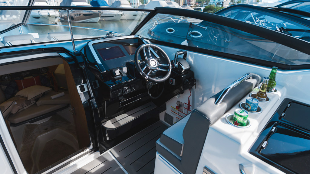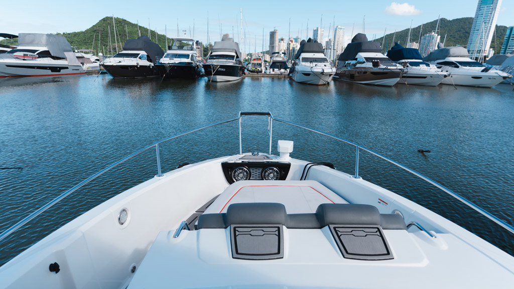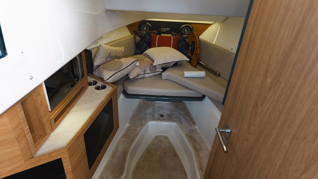 • Solário de proa rebaixado com estofamento anti-mofo;