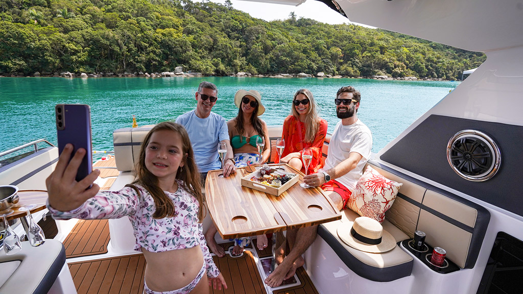 A nova Focker 388 Gran Turismo eleva o design ao seu estilo mais alto. A embarcação foi estrategicamente desenvolvida para gerar total funcionalidade e oferecer espaços privilegiados para viver momentos emocionantes a bordo.