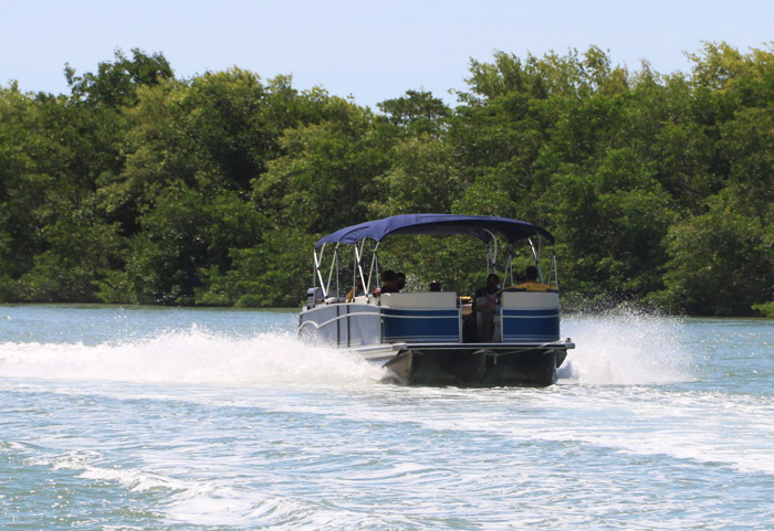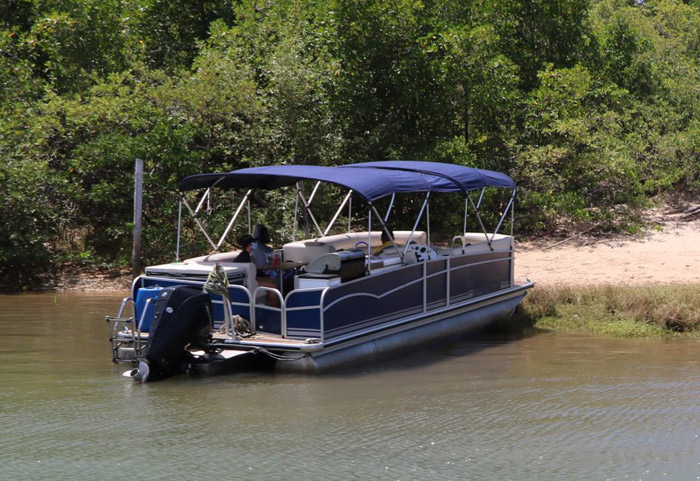 Com 24,6 pés (7,50m), o Pontoon VCat 750 leva até 18 pessoas a bordo e o casco pode ter largura de 2,50 ou 3,00 metros. Aceita motor de popa a partir de 100HP e permite instalar banheiro e churrasqueira.