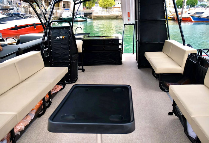 – Luzes de navegação em LED (Bombordo, boreste e alcançado), 6 luzes de cortesia, um painel de comando com display touch de comando de 7 polegadas. Chave geral de bateria 3 posições.