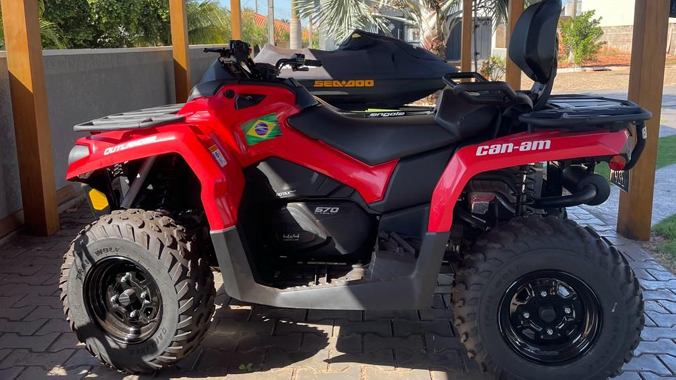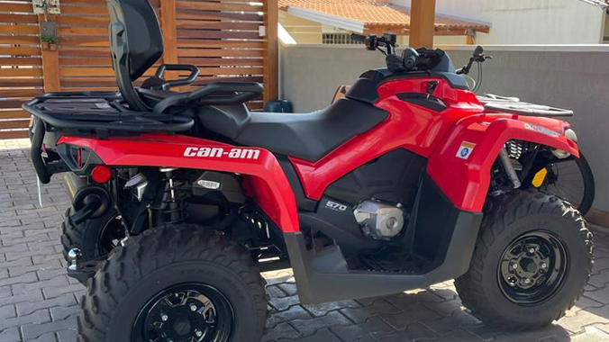 Can-Am Outlander 570 MAX, ano 2022. Quadriciclo em excelente estado de conservação, com apenas 70 horas/890 km de uso. Equipado com motor Rotax 570 V-Twin com 48 HP, câmbio CVT e capacidade para 2 passageiros. Não perca esta oportunidade!