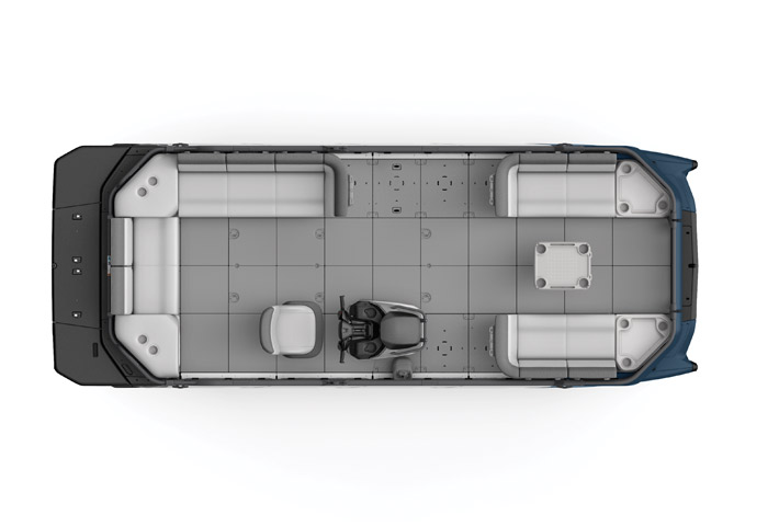 Uma plataforma pontoon com inúmeras formas de personalização, para você equipar exatamente de acordo com sua preferência e estilo de vida. Seu deck se adapta em segundos e equipamentos podem ser instalados e retirados num piscar de olhos, acomodando itens de conforto, esporte, pesca ou o que você quiser. Mude a configuração e tenha uma nova embarcação sempre que desejar.